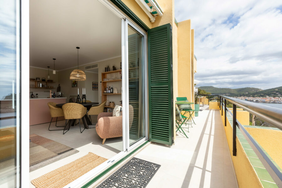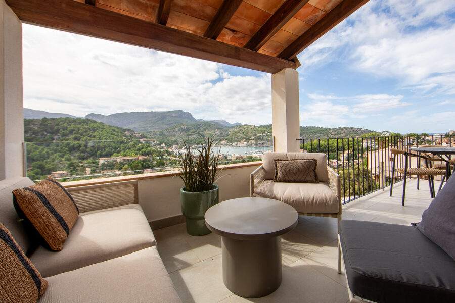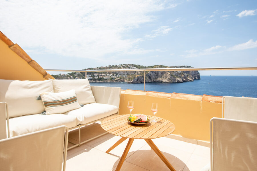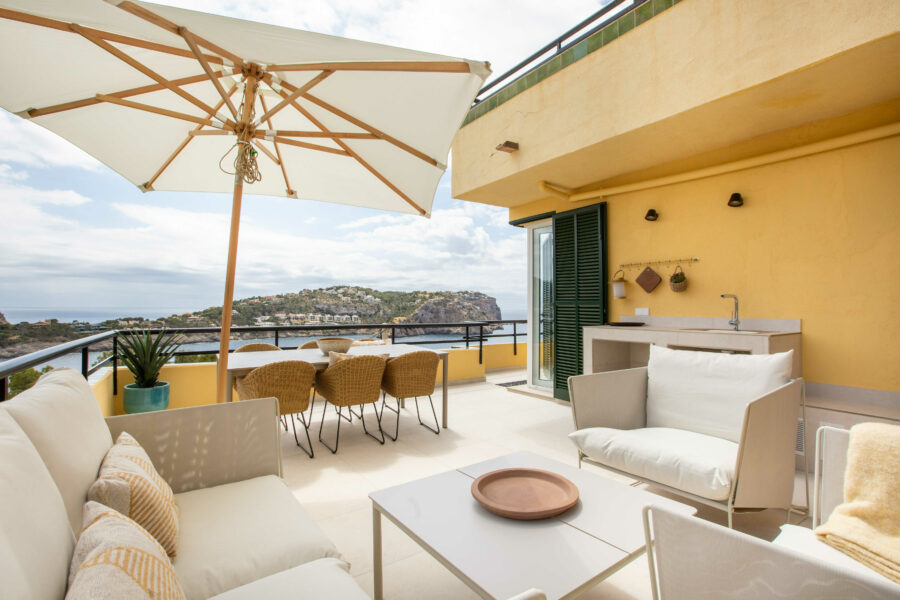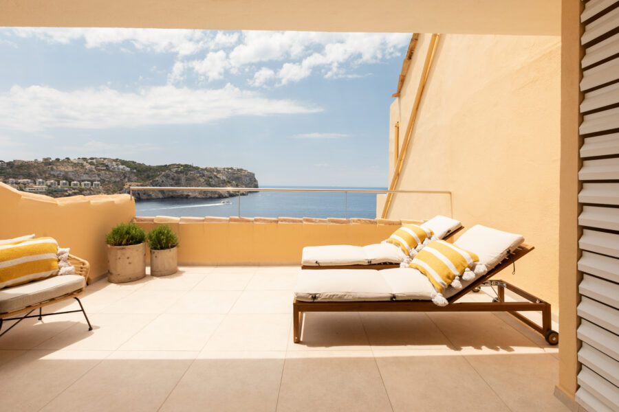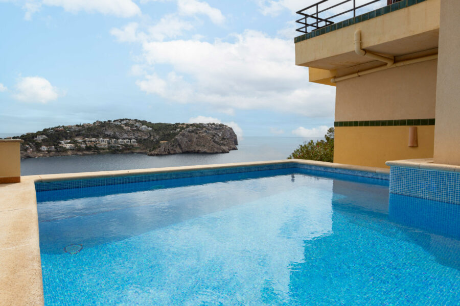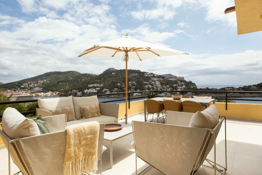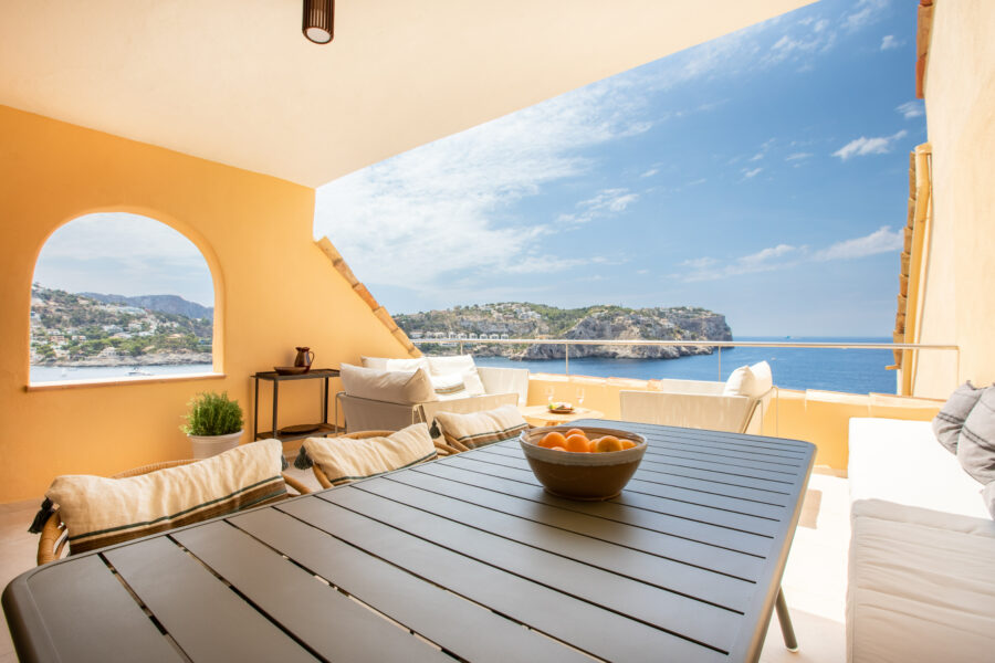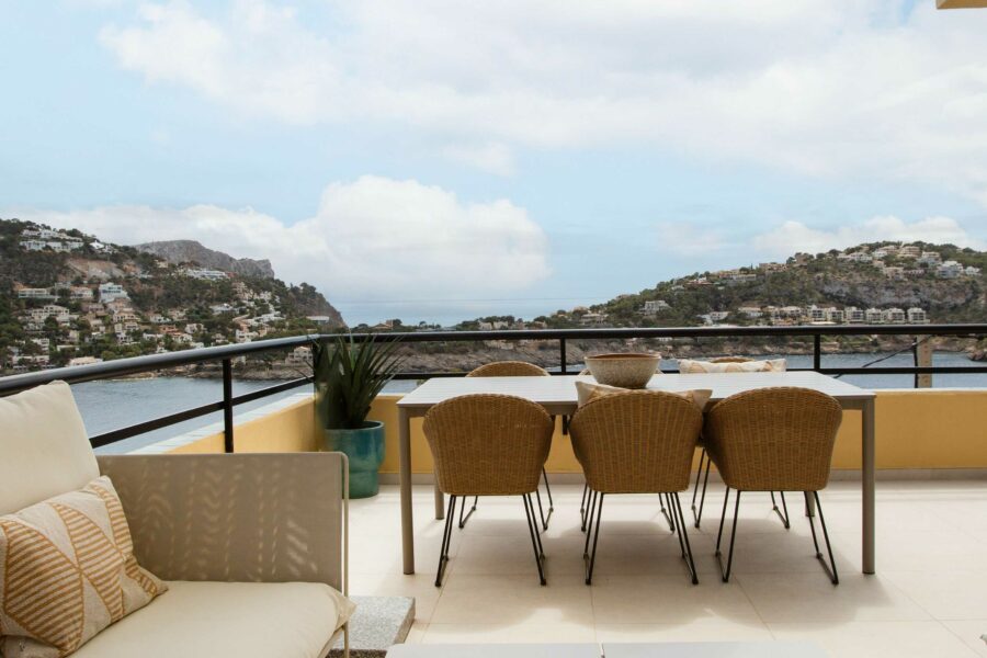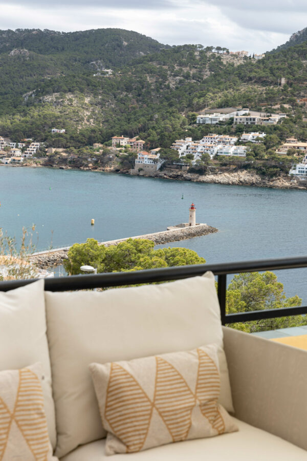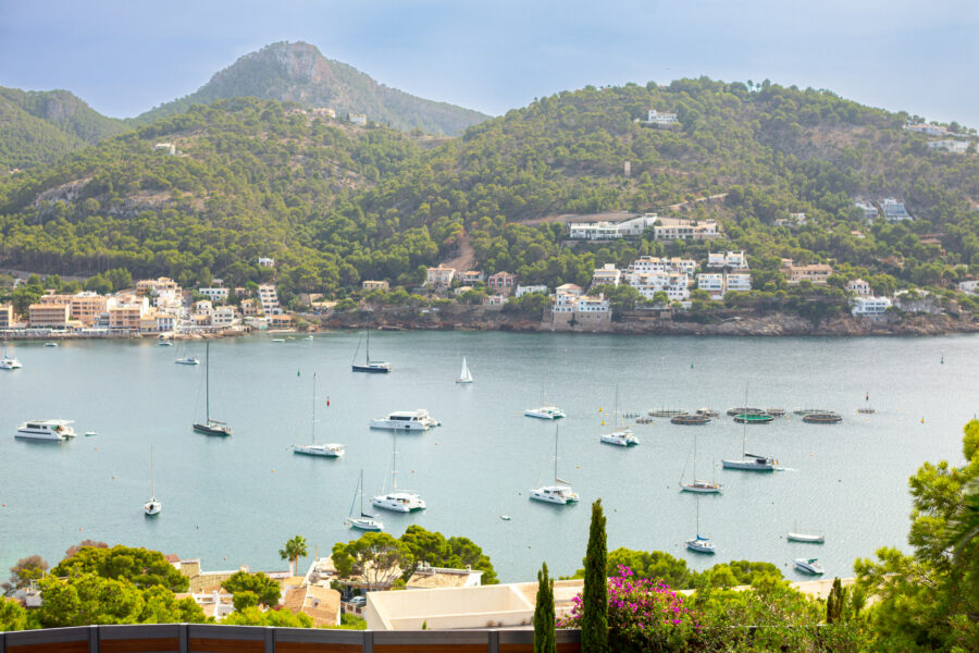 Fastigheten har ett utsökt läge precis vid vattnet i Port D’Andratx – med en fantastisk panoramautsikt över bukten och inloppet till hamnen.